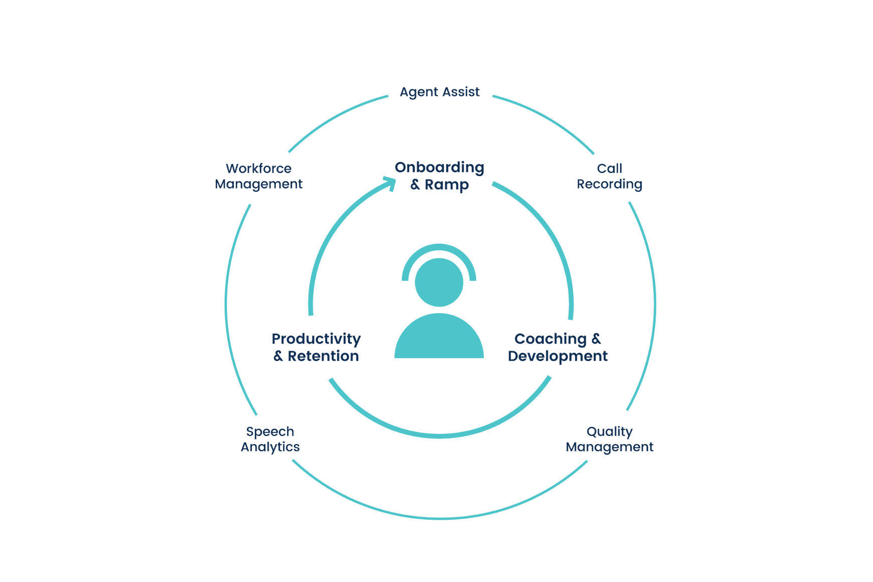 Mantenga el cumplimiento, recopile información e identifique las áreas clave de mejora con la grabación flexible de las llamadas entrantes y salientes, la reproducción sincronizada de las grabaciones de voz y de pantalla, y las opciones de almacenamiento personalizadas.